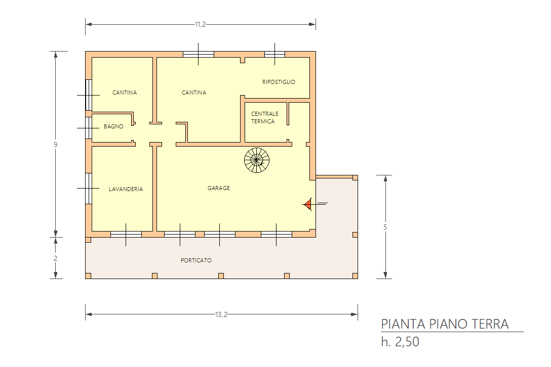 Il piano terra è ben organizzato con ampio porticato, spazioso locale garage, vani accessori quali lavanderia, due cantine e ripostiglio con piccolo servizio igienico, centrale termica. Alcune di queste stanze sono predisposte per il ricavo di una camera da letto ed una cucina.